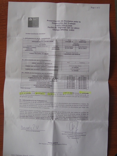 Frente a esta denuncia, tomamos contacto con la Fiscalía de La Unión, en la que se nos derivó a una audiencia para el miércoles 12 de diciembre a las 10 de la mañana.
