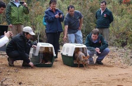 14 noviembre 2013. Enmarcada dentro del calendario de actividades de celebración de los 10 años de vida de la Reserva Costera Valdiviana, autoridades del SAG, CONAF, la Seremi de Agricultura y The Nature Conservancy realizaron la liberación de dos pudúes que se encontraban en rehabilitación en el Centro de Rehabilitación de Fauna Silvestre (CEREFAS) de la Universidad Austral luego de haber sido atacados por perros.