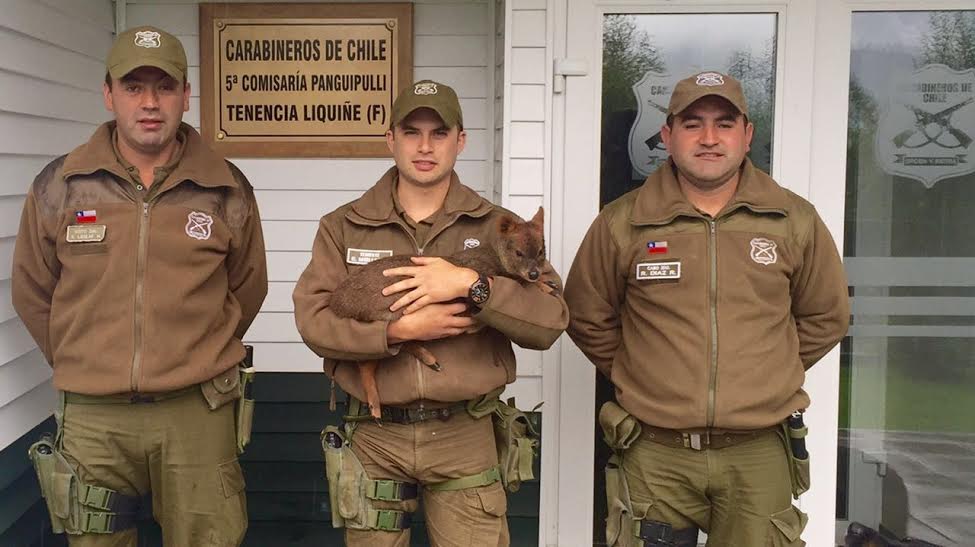 Carabineros de la Tenencia (F) de Liquiñe rescataron un Pudú que arrancaba de una jauría de perros.