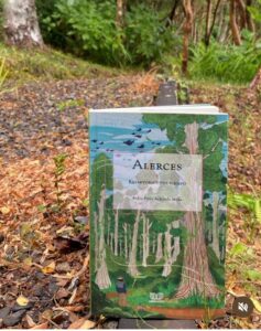 Alerces, reservorios del tiempo, del teólogo y poeta Pedro Pablo Achondo, propone una lectura profunda y sensible del alerce a partir de caminatas lentas y prolongadas por bosques del sur de Chile. En su prosa se entrelazan los registros de la extracción forestal, el oficio de los tejueleros, la labor de guardaparques y la ciencia, junto a una reflexión filosófica y espiritual sobre el territorio, el habitar humano y la crisis ambiental contemporánea.